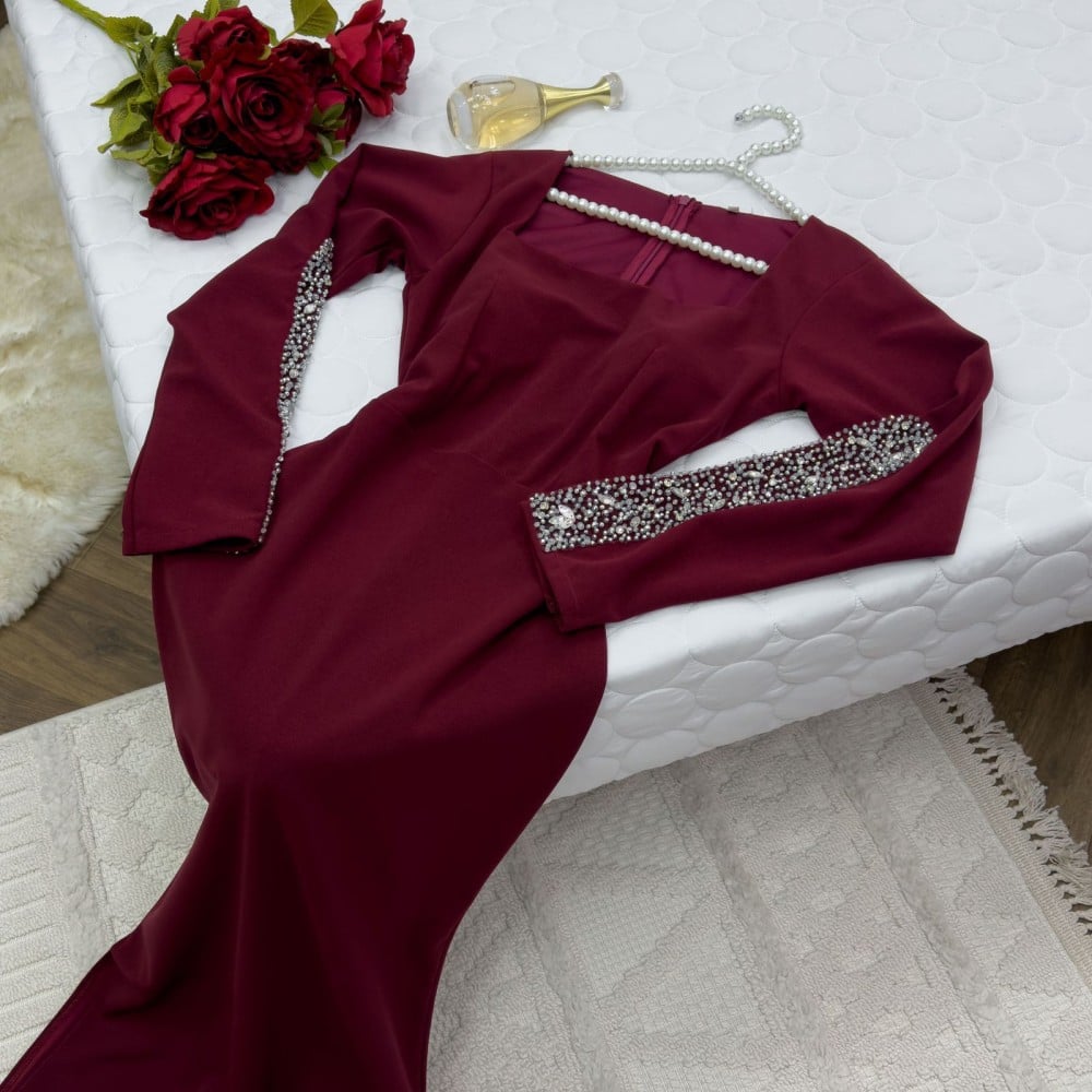 استعدّي للإبهار والأناقة مع فساتين كريب عنابي سكيني المثير و يتميز هذا الفستان بخامة كريب مطفي ستريتش عالية الجودة، تجعله مريحًا وسهل الملائمة و يضفي التصميم السكيني الأنثوي للفستان لمسة أناقة رائعة، مع فصوص راقية على الأكمام تبرز جمال الخصر و صُمم هذا الفستان بأنامل خبيرة مصممة، فهو يجمع بين الجاذبية والأناقة بطريقة لا تقاوم لذا استعدّي للتألق في أي مناسبة مع هذا الفستان العنابي الساحر.