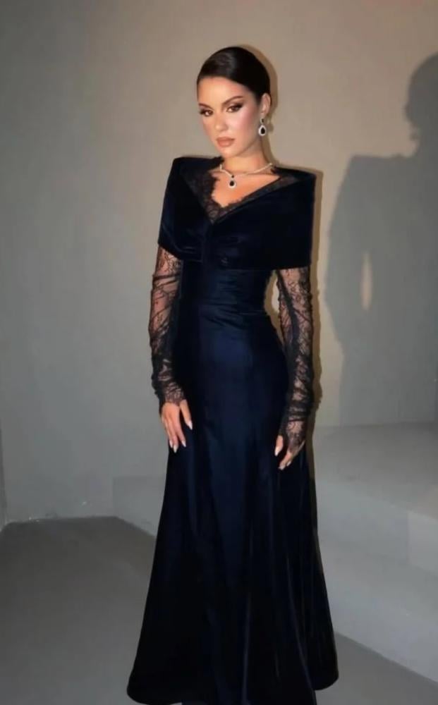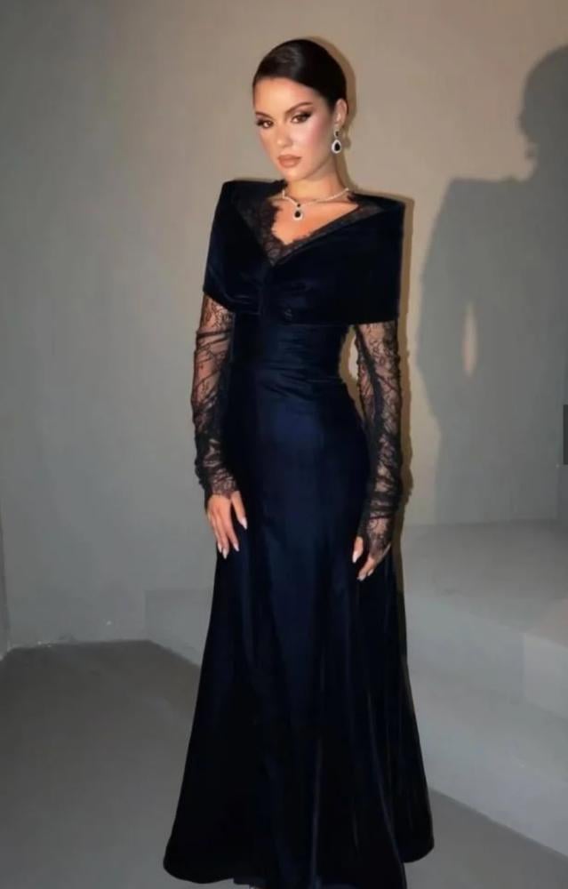 فستان كحلي قطيفه