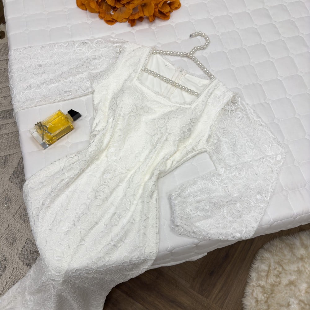 فستان ابيض دانتيل سكيني