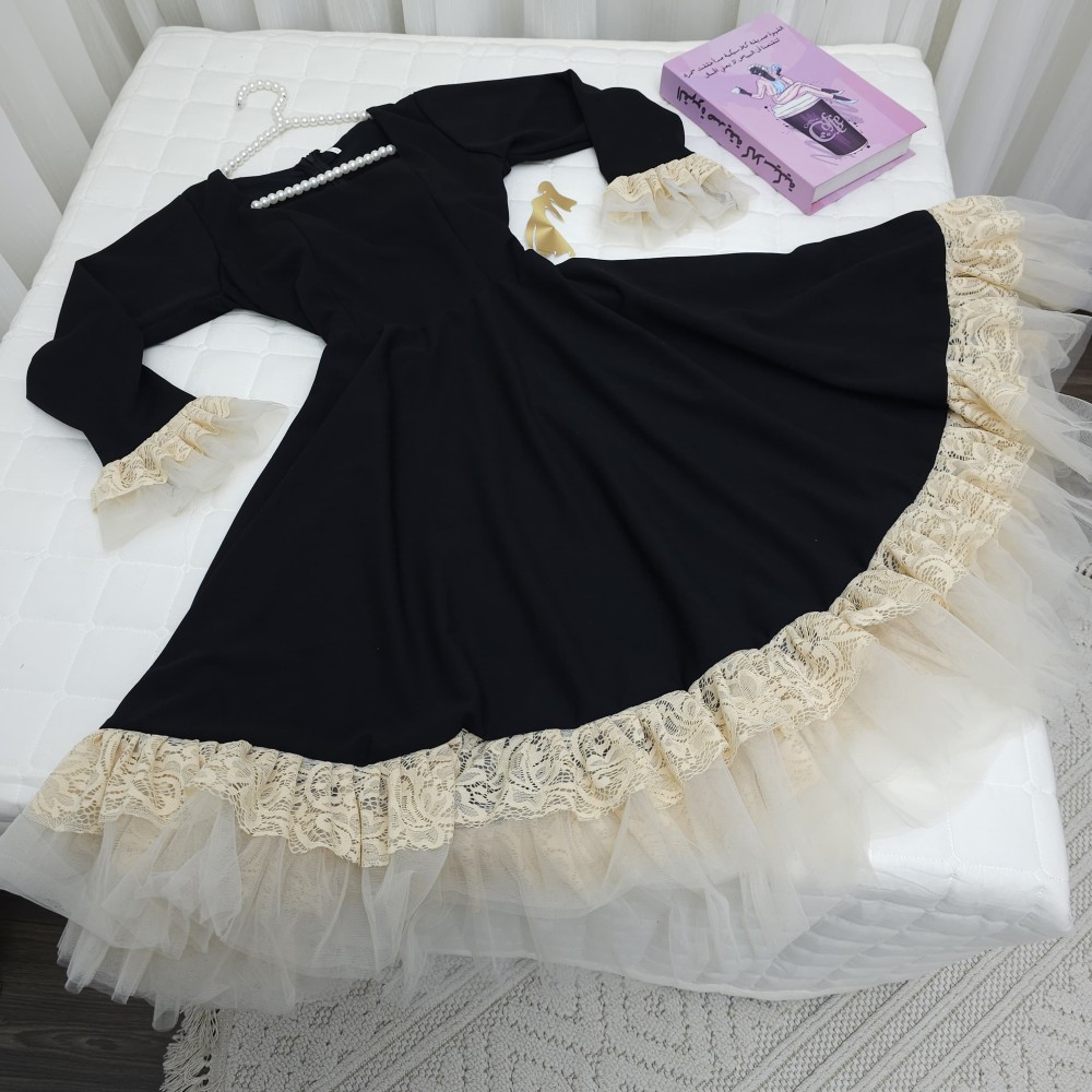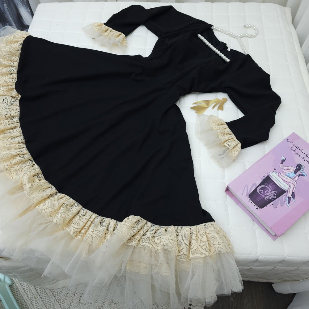 أرقى انواع الخام قابل للغسيل والكي دبل كلوش مدخل مع الدانتيل الناعم وقصته اللتي تبرز الخصر