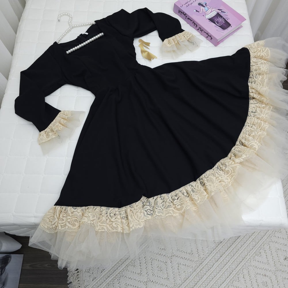 فستان سهرة كريب كوري اصلي مع دانتيل